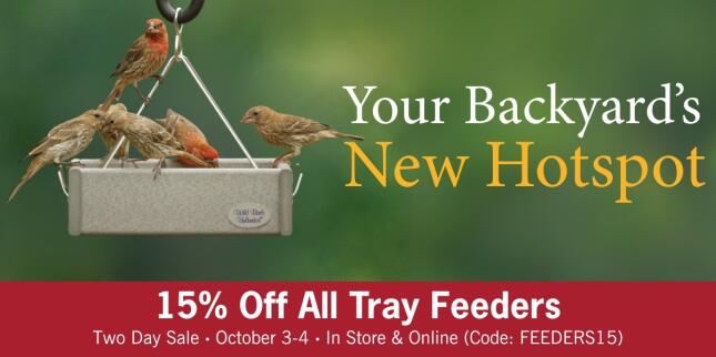 There’s no better time to add a tray feeder to your backyard or gift one to a fellow bird lover. This Friday and Saturday only, Oct. 3–4, all Tray Feeders are 15% Off at Wild Birds Unlimited. Shop online now and use code FEEDERS15 to save!